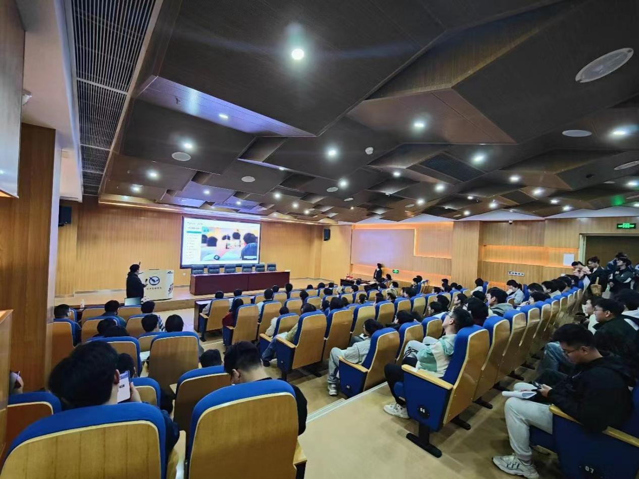 晚上七点,招聘宣讲在经管楼一楼报告厅准时开始,来自材化学院、计算机学院、经管学院、地信学院、环境学院的学生近百人,现场座无虚席,气氛热烈。吉利招聘团队对岗位要求、薪资待遇、员工福利、晋升通道等方面进行了全面而详细的介绍。他们表示,集团始终致力于推动绿色出行和可持续发展,未来将继续加大研发投入,推出更多具有竞争力的新能源汽车产品,为消费者提供更优质的出行体验。宣讲会上,招聘团队盛情邀请地大学子加入新能源汽车行业,加盟吉利集团,一起在未来的职业道路上共同努力。招聘团队就同学们关心的一系列问题耐心解答,对有意加入吉利集团的同学们现场收取简历并直接开展面试。