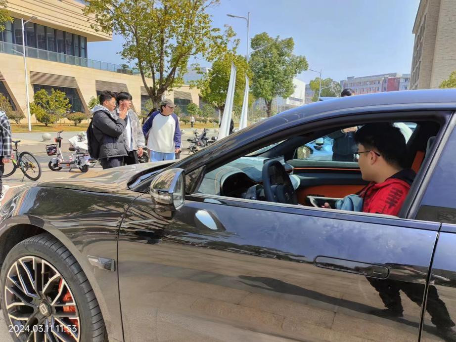 中午,三款极氪新能源汽车亮相校园,吸引众多师生驻足。未来城校区管理办公室主任王文起、色色 党委副书记李纪亮等一行来到活动现场,与企业代表就新能源汽车发展趋势和招聘需求进行了交流。
