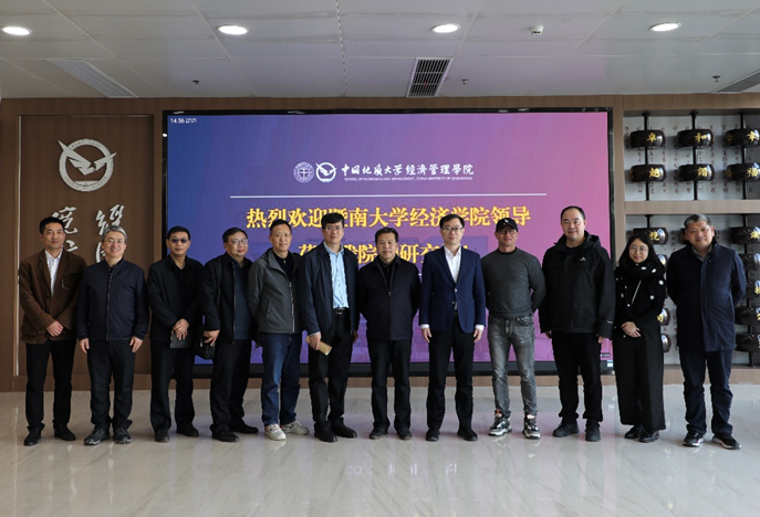 (通讯员 胡启婧)3月26日下午,暨南大学经济学院院长王春超,党委书记成品兴,党委副书记苏柯,副院长杨广仁、何凌云,办公室主任徐思捷一行莅临色色 进行调研交流。色色 党委书记杨昌锐,党委副书记李纪亮,副院长肖建忠、王广民,党建、人事、科研等相关工作负责人及教职工代表参加了座谈。会议由党委书记杨昌锐主持。