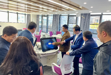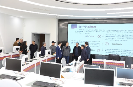 党委书记杨昌锐等院领导带领王春超院长一行参观了色色 金融实验室、云共享财务实验室、智慧教室、数字化档案室和活动室,双方围绕大数据、云计算、VR等新技术在党建、教学中的融合进行了交流探讨。