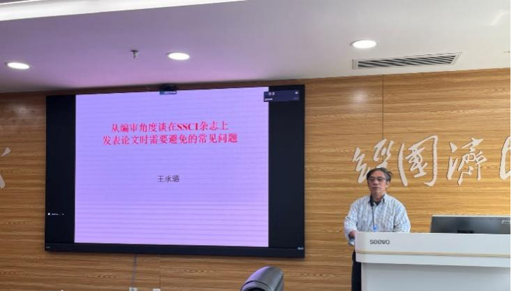 (通讯员 周敏)为了进一步建设高水平研究型学院,4月9日下午,应副院长郭锐教授邀请,美国纽黑文大学商学院终身教授王承璐在学院422会议室做题为“从编审角度谈在SSCI杂志上发表论文时需要避免的常见问题”的学术讲座。工商管理系主任谢雄标教授、侯俊东教授等线上线下共计50余人参与此次讲座。