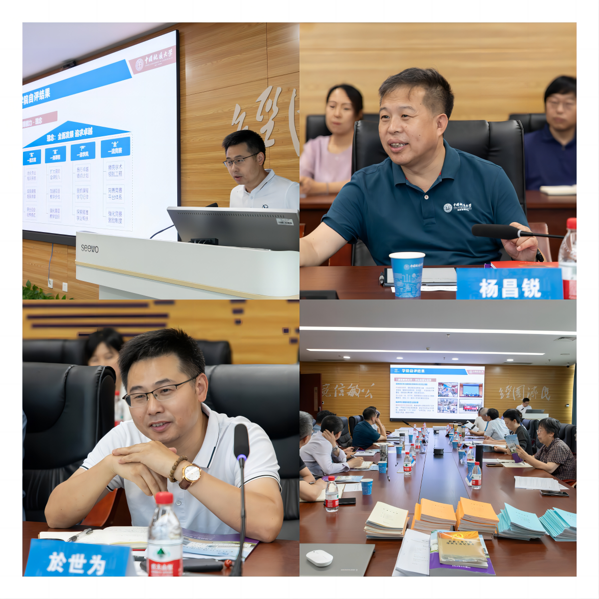 院长於世为详细汇报了学院自评自建阶段的实施进展,从课程设置、教学质量监控、学生实践能力培养到教学改革举措等多维度展示了学院的教育教学成果。检查组围绕教学大纲的创新性、课程考核的科学性、毕业论文的严谨性、实习基地建设的有效性等方面进行了深入质询。学院各相关部门负责人积极应对,就专家提出的问题逐一回应,并就学院在培养应用型经济管理人才方面的特色做法与评估专家展开了深入交流和探讨。