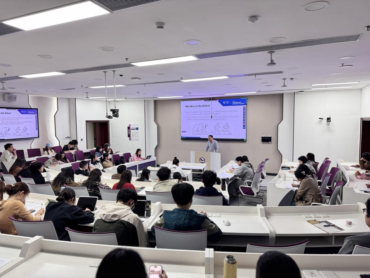 讲座中,Dai Bingtian副教授深入剖析了人工智能对各行业的颠覆性影响。他提出,AI已不再仅仅是工具,而是继英文、数学之后,未来职场的第三种基础素养。面对技术浪潮,Dai Bingtian副教授鼓励同学们转变“被替代”的焦虑,构建“人机协同”的核心竞争力。他强调,人类独有的“组织能力”——包括任务拆解、流程设计及结果校验,仍然是AI无法逾越的壁垒。他建议同学们通过高频次、场景化的实践,构建专属的AI工作流,在实战中积累经验,实现与技术的共同进化。