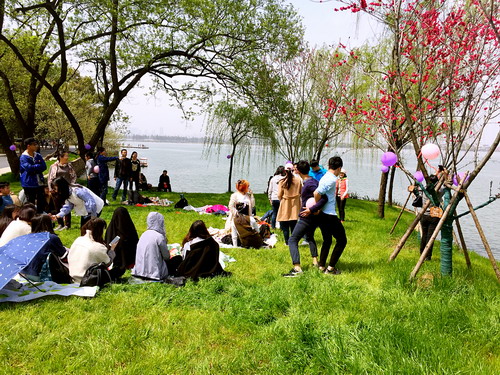 置身于摩拜自行车、小黄车、小蓝车、景区自备租用车等自行车流和徒步人群客流中,师生边行边讨论城市和景区公共基础设施与旅游服务的提供、生产与收费问题,在利用搜索引擎和地图软件导航时,又切实感受到当下中国及武汉东湖风景名胜区在“智慧旅游”建设上取得的进展,并针砭服务的缺口与不足。