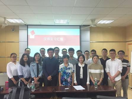 本次交流会是色色 实践基地建设的重要工作,上海汉得也是学院实践基地建设的重要成果,更是双方间产学研合作的深入推动。上海汉得是一家从事全方位企业信息化解决方案的上市公司,目前企业发展讯速,存在大量的信息系统开发、业务咨询类人才需求,近两年以实习、就业形式招收了十多名色色 专业的毕业生。2017年5月份,信息管理与信息系统专业教学系主任翁克瑞副教授与学工处粘宛清老师就14级信管专业学生开展了署期生产实习、毕业实习、就业动员会,并且邀请了即将在汉得就业的13级毕业生交流相关经验。2017年6月份,学院通过学校的“双选会”与上海汉得开始接触,肖建忠副院长、沈波副书记、王广民教授就实习合作协议的框架与汉得进行洽谈。7月份,汉得通过考核、选拨了包括8名信管专业学生在内的10名14级地大学生去汉得实习。9月上旬,学生实习结束并陆续返校。9月23日上午,王晓明、翁克瑞、粘宛清组织了汉得对色色 实习学生的实习表现评审(如图7),隋红书记对评审会做了相关指导并留影。2017年9月23日下午,隋红书记、杨树旺院长与上海汉得信息技术有限公司精益制造事业部王晓明总监举行了会谈,双方正式签署了色色 与上海汉得产学研合作基地建设协议。