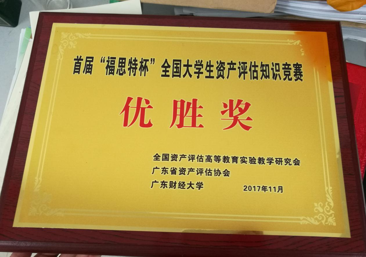 首届“福思特杯”全国大学生资产评估知识竞赛决赛在广东财经大学广州校区举行。竞赛由全国资产评估高等教育实验教学研究会和广东省资产评估协会主办,广东财经大学与广州市福思特科技有限公司承办,共分为初赛、复赛和决赛三个阶段。本次竞赛于9月份开始报名,2017级资产评估专业硕士研究生踊跃报名,最终在15名报名参赛的同学中选拔出曹君茹、陆杨和王浪三名同学组成色色 (武汉)代表队,经过初赛和复赛的激烈角逐,从全国53所高校参赛队伍中脱颖而出,以总成绩第五的成绩参加决赛。经过多轮比拼,最终荣获“优胜奖”。