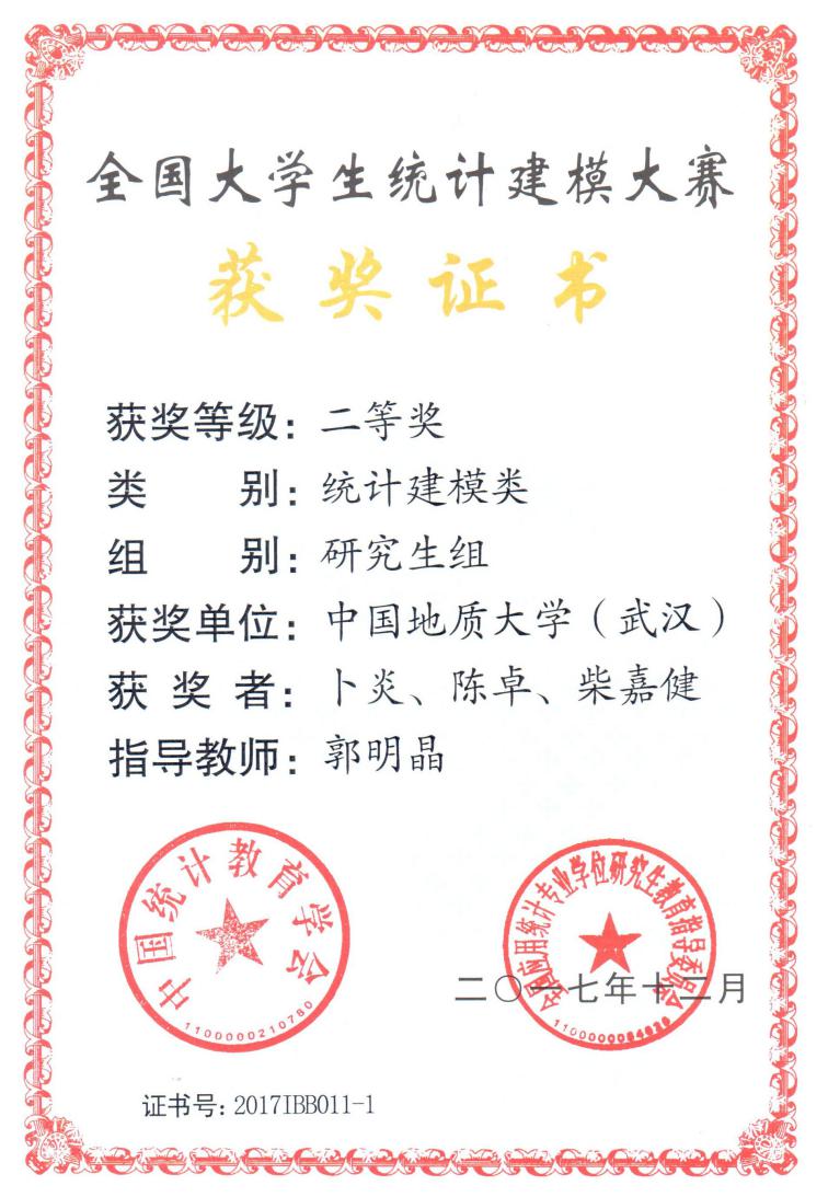 2017年12月1-4日,第五届全国大学生统计建模大赛答辩赛在北京华尔顿爱华国际中心举行。由经管学院郭明晶老师指导的参赛团队(卜炎、陈卓、柴嘉健)提交的作品《基于网络搜索数据的中国流感预警模型研究》荣获统计建模类研究生组二等奖、总分第9名的好成绩。