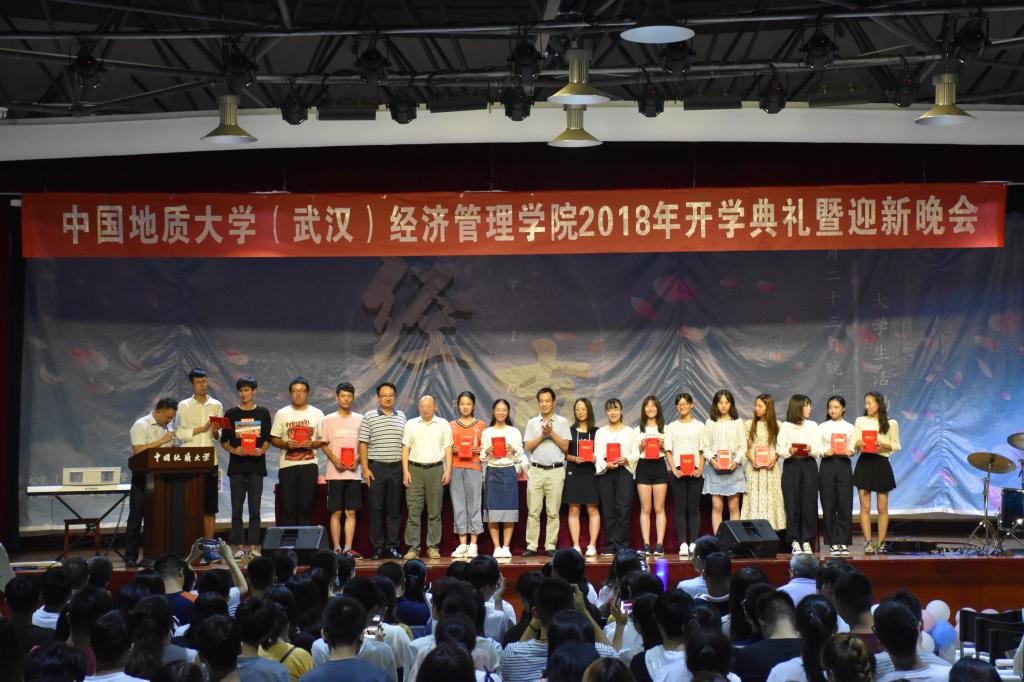 开学典礼结束后,经管学院学生会为全院师生献上了迎新晚会。经管舞蹈队、话剧队、主持人队接连出场,为新生送上精心编排的节目。由经管学院、资源学院、艺术与传媒学院学生组建的MP4乐队是晚会前半段的亮点,一首《失恋阵线联盟》带动全场大合唱,将气氛推向高潮。接下来,校模特队、“我是偶像”校园歌手大赛冠军吴笠维轮番登场,台下掌声不断。院党委副书记沈波和2018级新生辅导员努尔夏提·居勒提也带来节目,迎新晚会在同学们的掌声中完美落幕。