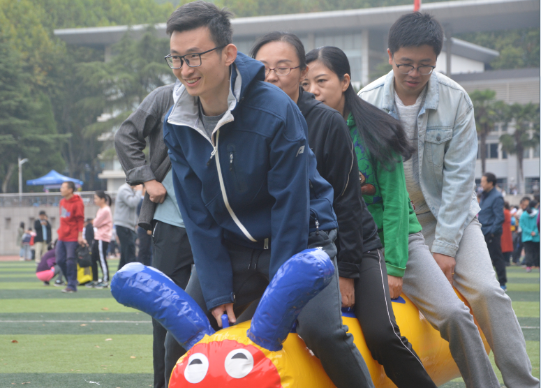 学院教职工代表队积极参与教工组项目,在组合成语接力、欢乐毛毛虫、无敌风火轮等趣味项目中表现不俗;院党委副书记沈波亲自带队参加足球射门比赛项目,最终获得足球射门团体第六名。