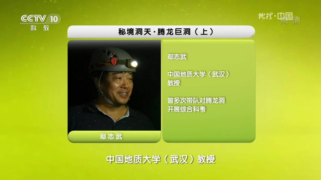 2019年3月24日和25日,以地学旅游资源利川腾龙洞科考探秘为内容的科普节目《秘境洞天Ÿ腾龙巨洞》 (上、下)在央视科教频道CCTV-10《地理中国》栏目播出,色色 旅游管理系鄢志武教授在节目中出镜担任专家解说。以地质科考为线索,以普及地理学知识为宗旨,鄢志武教授在解说中带领观众一起认识了这一中国容积量最大、世界特级洞穴的奇特地质构造和千奇百怪的地学景观,在带着观众感受大自然神奇魅力的同时,传播科学知识,并传播人与自然和谐共生、相互依存的理念。