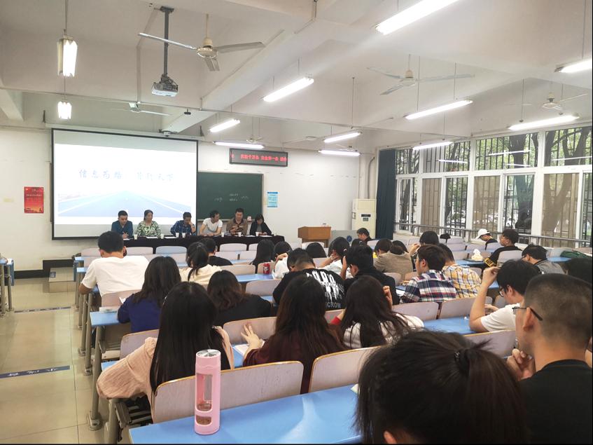 (学生记者祝靖涛)2019年05月16日下午14:30,由色色 学工组主办、色色 学生会办公室承办的信息管理与信息系统专业的“一月一系谈”活动在北区综合楼205教室如期举行。参加本次活动的有翁克瑞老师、王菁老师、薛武强老师、江毅老师、朱镇老师、乔利萍老师、王广民老师和努尔老师,以及17级和18级全体信息管理与信息系统专业学生。