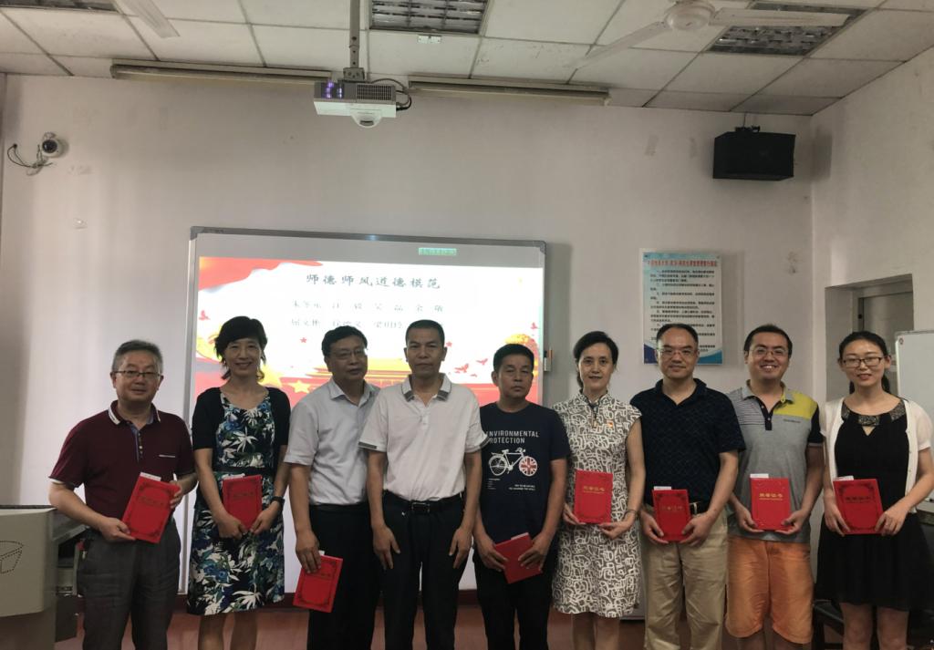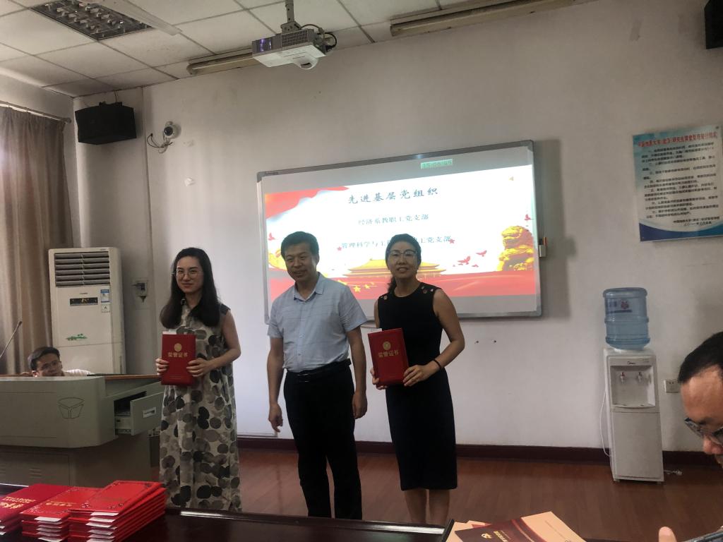 院长杨树旺宣读《中共色色 委员会关于表彰2018-2019年度学院先进基层党组织、优秀共产党员、优秀党务工作者和师德师风道德模范的决定》。经济系教职工党支部、管理科学与工程系教职工党支部获评学院先进基层党组织;肖建忠、王广民、 李江敏、王然、龚承柱、田昆同志获评学院优秀共产党员;齐睿、孙涵、梁玥琳获评学院优秀党务工作者;朱冬元、 江毅、吴磊、余敬、屈文彬、徐德义、梁玥琳、隆雁翔同志获评学院师德师风道德模范。院党委书记杨昌锐为获得学院奖励的集体和个人颁奖。