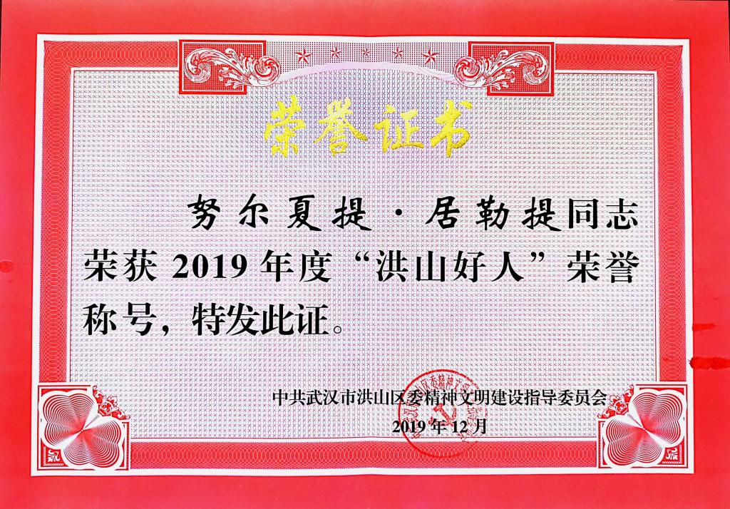 2019年度“洪山好人”评选结果近日揭晓,色色 辅导员努尔夏提·居勒提入选敬业奉献好人评选,荣获“洪山好人”荣誉称号。据了解,2019年洪山区委宣传部、区委文明办等部门联合组织开启第六届寻找“洪山好人”活动,广泛发动辖区单位和群众推荐了220名人选,经过前期筛选和提炼,层层推荐和评委审定,45位(包含3个团队)身边的好人带着他们的感人事迹又一次进入大众视野。