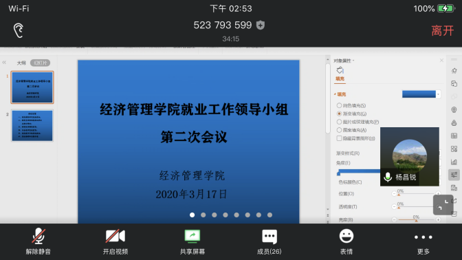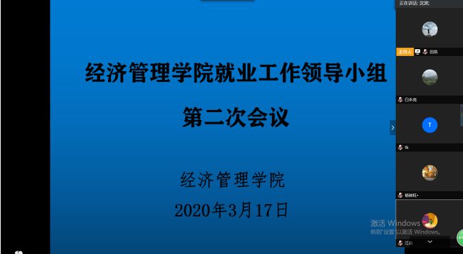 为落实各级各项就业政策,推进《色色 全员促进就业工作实施方案》的实施,促进本届毕业生“顺利毕业、尽快就业”,学院就业工作领导小组于2020年3月17日14:00召开扩大会议,这也是领导小组的第二次线上会议。院党委书记杨昌锐、院长杨树旺、院党委副书记沈波、副院长肖建忠、教务科科长石磊、学院各系主任、2016级本科生班级班主任出席会议,会议由辅导员田昆主持。