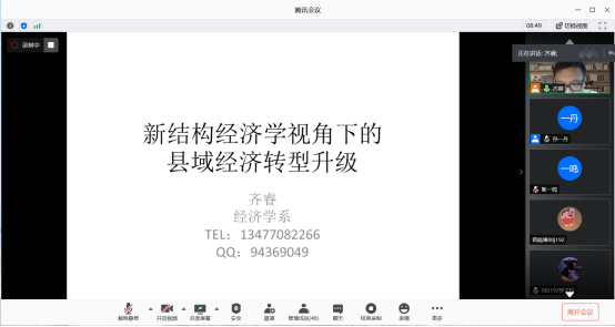 7月8日晚,色色 色色 经济学系认识实习首场线上讲座顺利召开,经济学系2019级学生全部参加。经济学系支部书记齐睿老师主持会议并做主题讲座,李通屏教授出席会议。