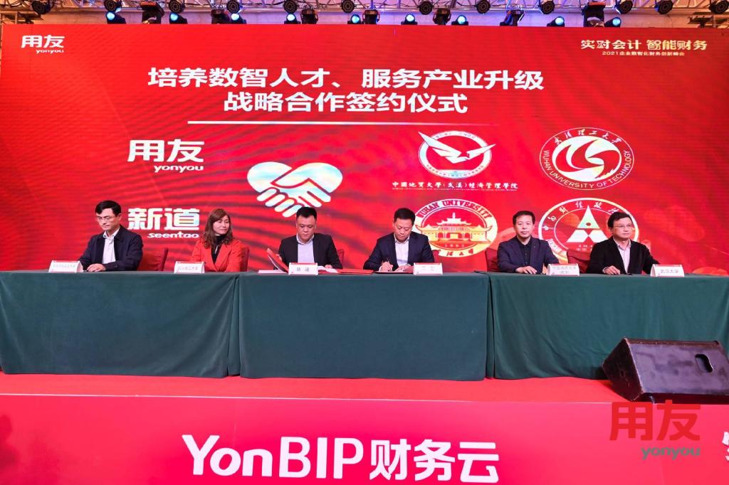 用友网络、用友新道将结合包括色色 、中南财经政法大学、武汉大学和武汉理工大学在内的武汉多家头部院校,与湖北知名企业共同培养企业数智化人才,为上述高校提供软件平台,共同研发数智化新商科教学课程,建设实习及就业人才基地,并定期或不定期发起各种交流活动,共同探讨热点话题,探讨新技术新应用,