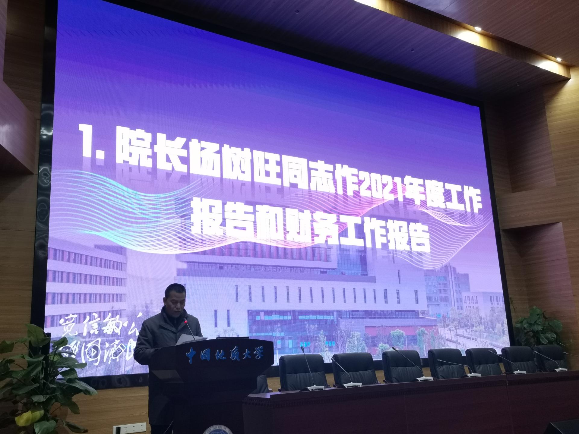 院长杨树旺同志代表学院党政班子从党的建设、学科与专业建设、人才培养与学生工作、科学研究与社会服务、文化建设与工会工作等方面回顾了学院在2021年各项工作的开展情况,实事求是地总结了学院在“十四五”开局之年取得的各项成绩,分析了学院发展中存在的问题和不足,从加强党的建设、加强人才引育、加强学科建设、加强课程思政、加强能力培养、深化国际合作、完善经管大楼建设、强化学院文化建设等方面提出了新的一年学院发展建设的方向、任务、措施和路径。报告是进一步落实色色 “十四五”规划的行动纲领,必将对色色 发展起到承前启后的影响。随后,院长杨树旺同志还向大会作《2021年度财务工作报告》。