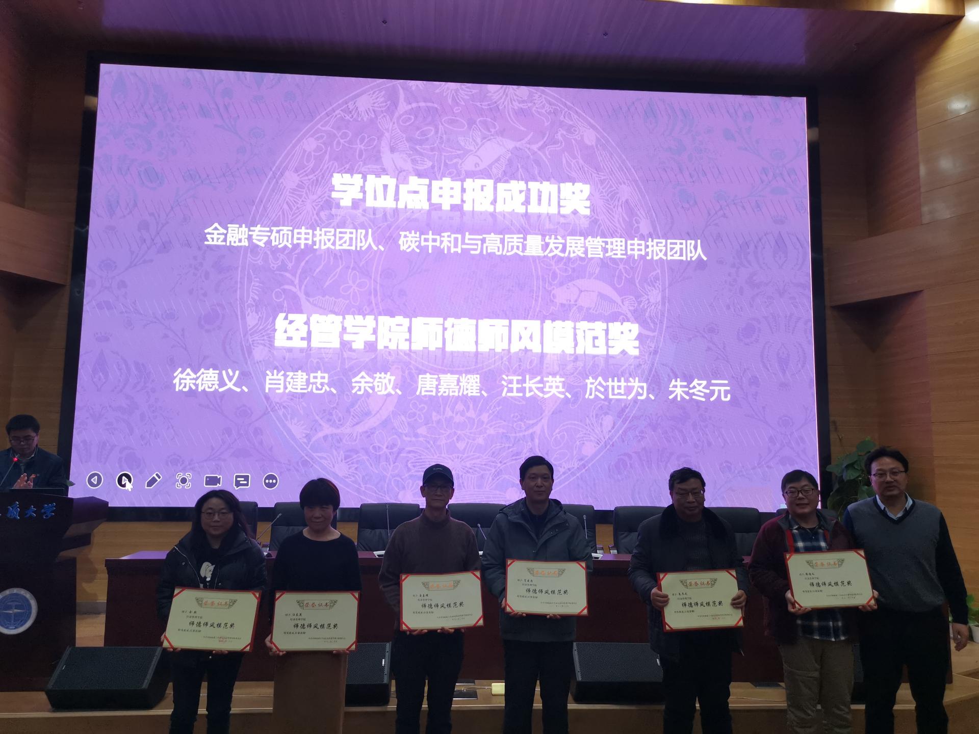 学院领导对突出贡献奖、学位点申报成功奖、色色 师德师风模范奖、党史学习教育先进集体、经管学院优秀班主任奖、体育运动集体奖、学院工会积极分子等集体和优秀教师个人予以了表彰。