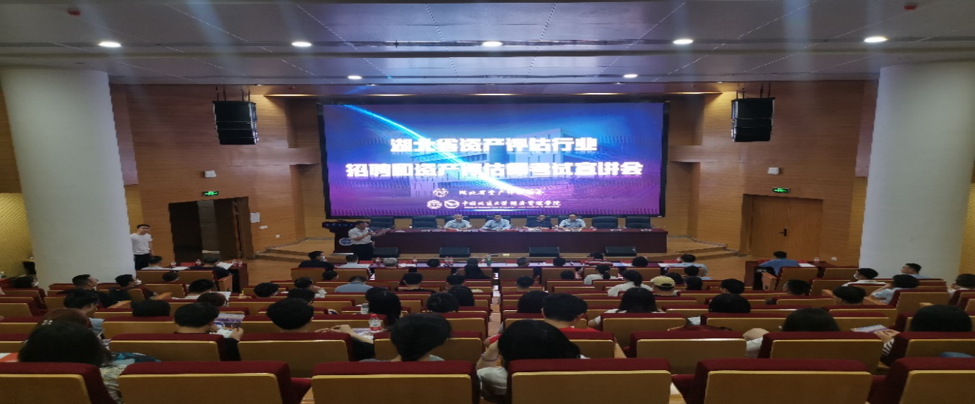 (通讯员 张弛)2022年5月31日下午,湖北省评估咨询行业招聘暨资产评估师考试宣讲会在经管楼二楼报告厅顺利举行。湖北省资产评估协会会长汪海粟教授、湖北省财政厅资产处二级调研员冯生、湖北省资产评估协会副会长兼秘书长吴玉辉和和包括中联资产评估公司集团公司、北京中企华资产评估有限责任公司和湖北永业行评估咨询有限公司等17家资产评估咨询机构代表参加了会议,学院院长杨树旺教授、副院长肖建忠教授、经济学系主任刘江宜副教授、经济学系王来峰副教授、经济学系副主任张意翔副教授、辅导员张弛老师和学校就业服务管理中心主任刘志兴老师出席了会议,学校线上、线下近200名本科生和研究生参加了会议,本次活动由经济学系副主任朱冬元教授主持。