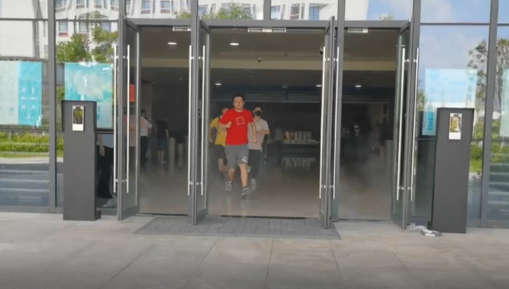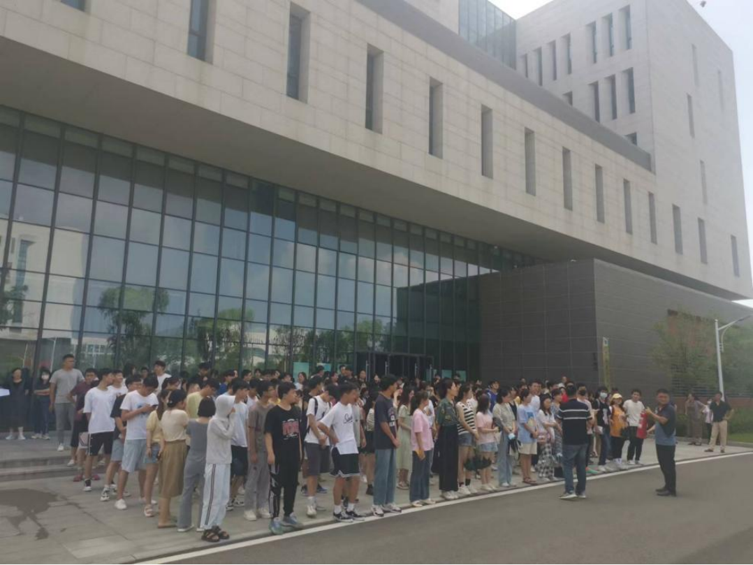 2022年6月29日下午2:58分随着总指挥的一声令下,未来城校区科教七楼消防警报声一遍遍被拉响,各楼层安全员迅速引导师生快速疏散,沿着指定疏散通道快速前进,有序撤离到指定安全区域,整个逃生过程迅捷安全有序,用时3分20秒。