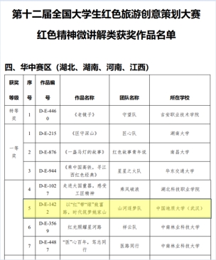 2022年6月30日,在中国共产党成立101年纪念日前夕,第十二届全国大学生红色旅游创意策划大赛初赛结果公布,色色 李会琴老师指导的“山河逐梦队”(学生成员:刘婉婷、赵芳琪、龙心滢、吴胜珍、加里)荣获“红色精神微讲解”类华中赛区一等奖。这是色色 连续两年在该项大赛中获奖,作品质量和奖项等级都实现了新的突破。