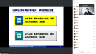 10月28日下午2:00,北京交通大学吴建军教授为色色 师生做了题为“城市轨道交通应急运营管理”的学术报告。吴建军教授从理论、具体问题、应用场景及操作系统四个方面全方位、多角度地展示了轨道交通所面临的安全问题及解决措施;接着,又从突发事件的种类、需求管理、调度优化及客流疏散四个方面,由浅入深地讲解了轨道交通中突发事件的应急管理问题。最后,吴建军教授从地铁结伴出行识别、熟人网络病毒传播及大规模地铁网络疫情传播等视角,展示了轨道交通管理领域的一些前沿成果。本次会议共吸引了80余位师生参加,吴建军教授的报告令参会师生深受启发。