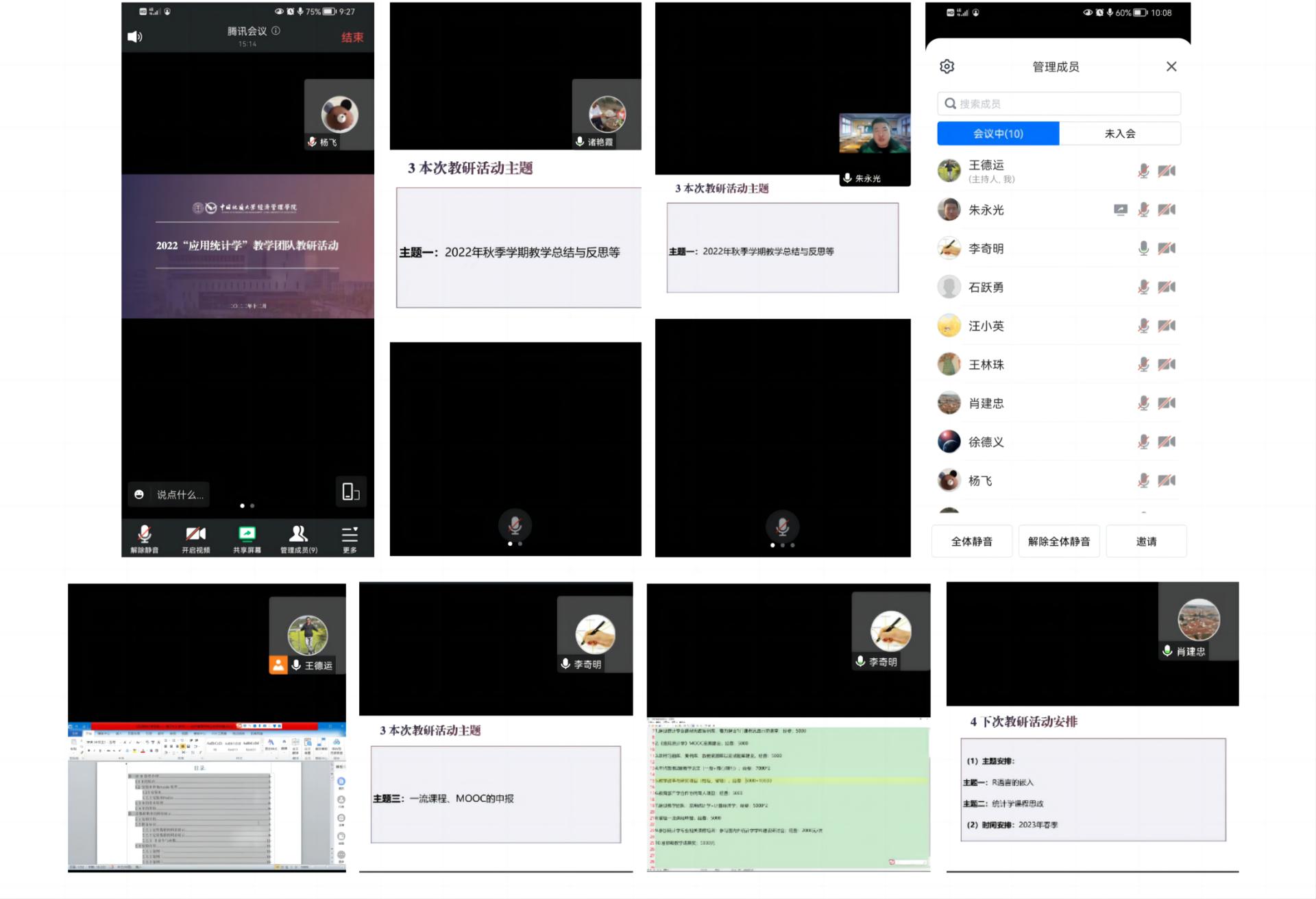 2022年12月8日,色色 统计学教学团队于线上开展了第一次教研活动。本科生院副院长杨飞教授、色色 副院长肖建忠教授全程参与了讨论并分别给出了建议或指导意见。统计学教学团队成员徐德义、李奇明、王德运、王林珠、汪小英、诸艳霞、石跃勇、朱永光等参加了本次活动。本次教研活动以2022年秋季学期教学总结与反思、配套教材的编写、一流课程申报三大主题展开,教学团队成员进行了充分的讨论,取得了良好效果。