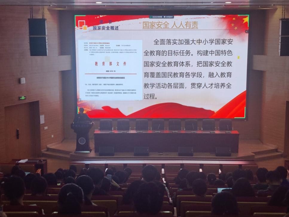 随后蔡杨从定义入手阐述了何为国家安全,依次介绍了国家安全包括政治安全、国土安全、军事安全等十二个方面的基本内容,重点解读了维护国家安全应坚持的基本原则,以2011年利比亚大撤侨和2015年也门撤侨为例,诠释了人民安全是国家安全最核心的部分,其他安全都应统一于人民安全。随后,蔡杨带领同学们学习了总体国家安全观的相关内容,总体国家安全标志着我们党对国家安全基本规律的认识达到新高度,坚持总体国家安全观,统筹发展和安全,增强忧患意识,做到居安思危,是我们党治国理政的一个重大原则。
