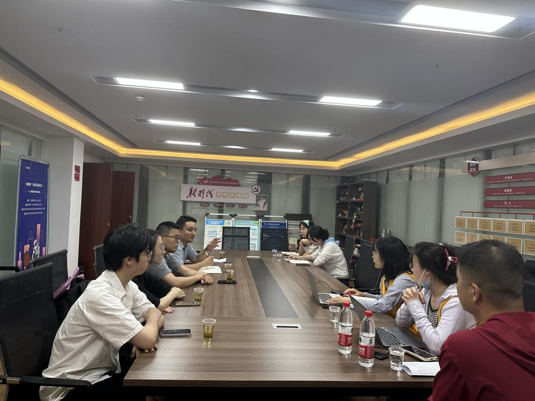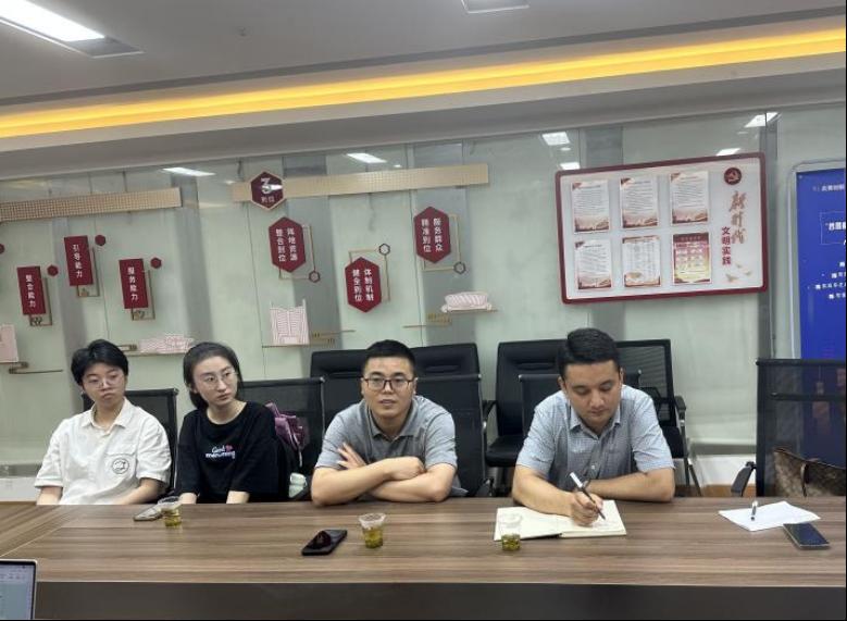 光谷壹新社工项目主管覃敏姣介绍了社区暑期托管班等项目计划,提出招募志愿者和助教等诉求,并高度肯定了色色 志愿者在学雷锋月等活动中服务社区工作的积极表现,希望继续深化合作开展系列项目。努尔夏提·居勒提老师与工作人员就项目对接进行了详细交流,并介绍了色色 “经鹰少年”宣讲队、启明星盲校支教团、经鹰宣讲团、志愿者工作部等发展情况,表达了推动志愿服务和社会实践进社区的期待。