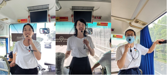 返程车上,梁玥琳老师从记录片《话说长江》说起,并邀请西尔艾力·买买提同学一同诗朗诵《新话说长江》,将师生们再次带回生态美丽、产业兴旺、文化昌盛的长江文明之河。师生共同倡议和约定,以长江母亲河儿女的身份,一起唱响新时代的《长江之歌》!