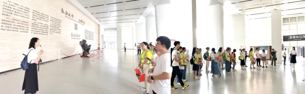 场馆参观环节,旅游管理专业教师与旅游管理专业085211班同学为大家呈现了有深度、有温度、有思考、有感悟的精彩讲解。在长江文明馆的序厅,李江敏老师为大家介绍长江文明馆的建成历史、设计理念和意义,并引导同学们欣赏黄金辉先生的长诗《父亲江》,感受诗人笔下长江文明奔腾不息的生命力,以及中华文化的和谐统一之美。
