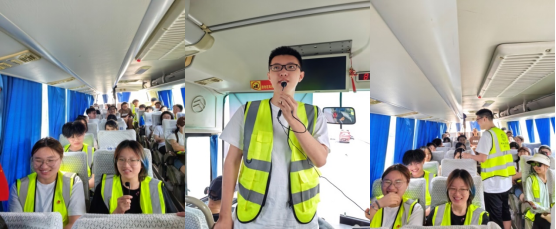 去程车上,旅游管理系刘晶晶、李江敏、周玲等三位老师先后为大家介绍本次活动的组织策划、旅游管理专业及其教学开展、旅游管理系党支部“结对领航”、武汉市建设长江文明枢纽城市的情况。而旅游管理系20级的王晓虎和蔡万佳同学,则组织同学们开展“今天我要去武汉自然博物馆”的记忆力大考验游戏活动,师生们在不知不觉中即到达活动地点武汉园博园。