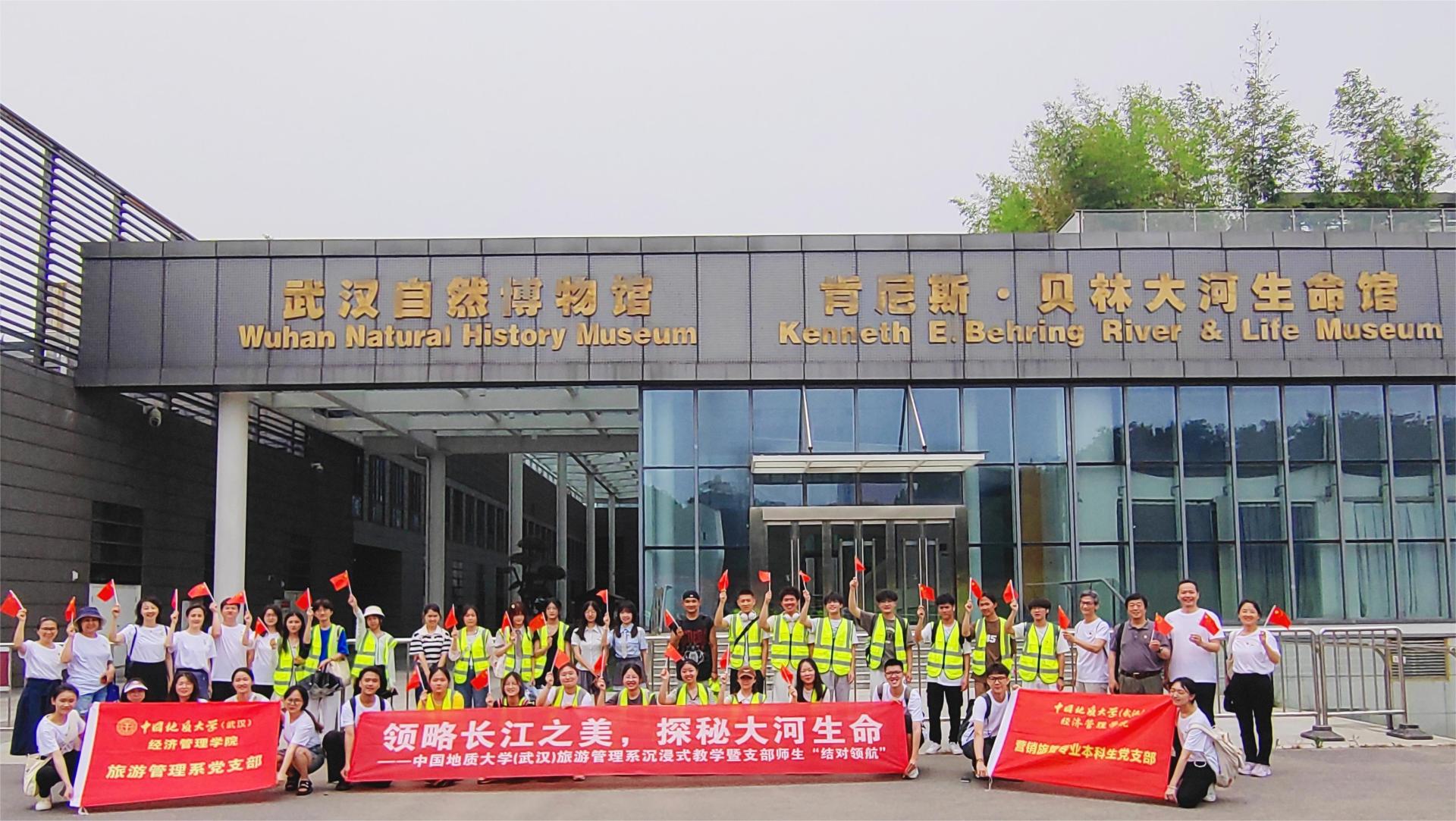 (通讯员:周玲 刘晶晶,摄影:李江敏 梁玥琳)在国家推进长江国家文化公园建设的背景下,为响应习近平总书记“把长江文化保护好、传承好、弘扬好,延续历史文脉,坚定文化自信”的号召,带领同学们沉浸式体验旅游接待业态和文旅融合模式,切实把专业学习与国家战略需求、产业发展前沿紧密结合,把教学做在祖国大地上,6月11日,来自旅游管理系党支部“结对领航”班级同学、学院辅导员蔡杨、以及旅游管理系八名专业教师等一行,来到武汉园博园暨武汉自然博物馆,开展沉浸式教学暨师生“结对领航”活动。