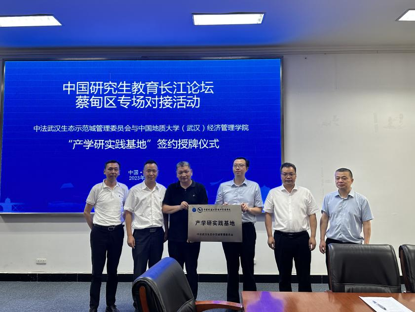 参观结束后,师生来到中法武汉生态城管委会,与蔡甸区委组织部,管委会人才办、招商处等相关领导座谈。色色 优秀校友,蔡甸区委常委、组织部部长王呈华参与交流。双方围绕人才培养与输送、产学研融合发展等共同关心的话题进行深入交流,签署了校地战略合作协议。学院为中法武汉生态示范城管委会授牌“产学研实践基地”。