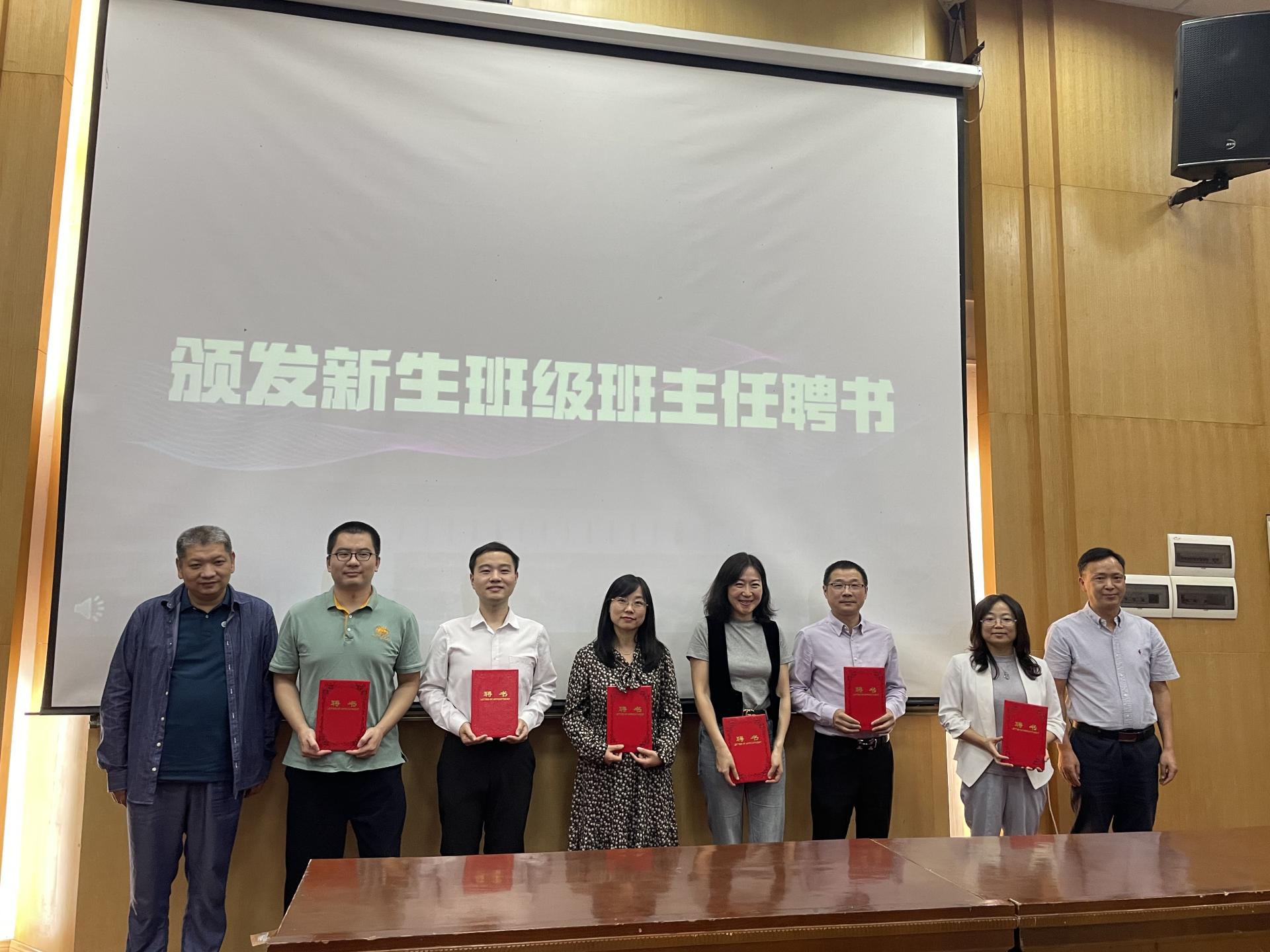 典礼第六项,副院长肖建忠、王广民为2023级班主任老师颁发聘书。