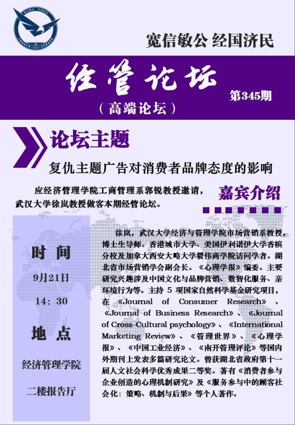 经管论坛(第345期)复仇主题广告对消费者品牌态度的影响