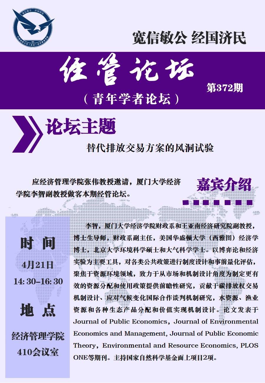 经管论坛(第372期)替代排放交易方案的风洞试验