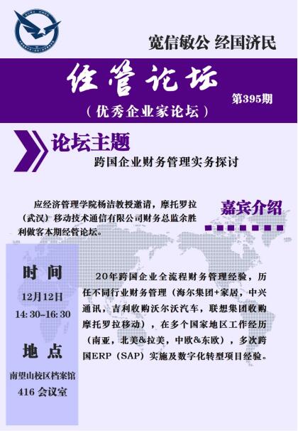 经管论坛(第395期)跨国企业财务管理实务探讨