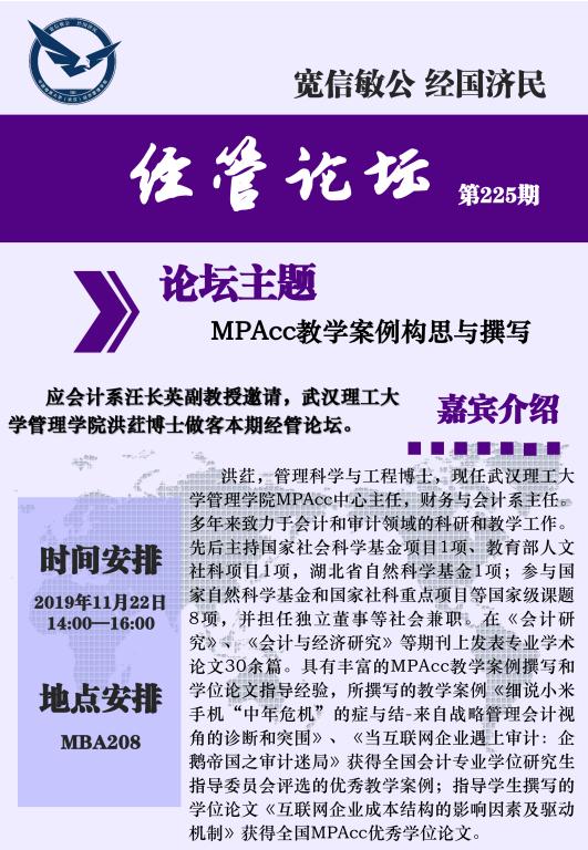 经管论坛(第225期)MPAcc教学案例构思与撰写
