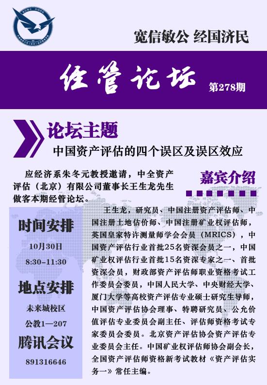 经管论坛(第278期)中国资产评估的四个误区及误区效应