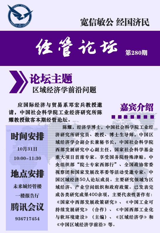 经管论坛(第280期)区域经济学前沿问题