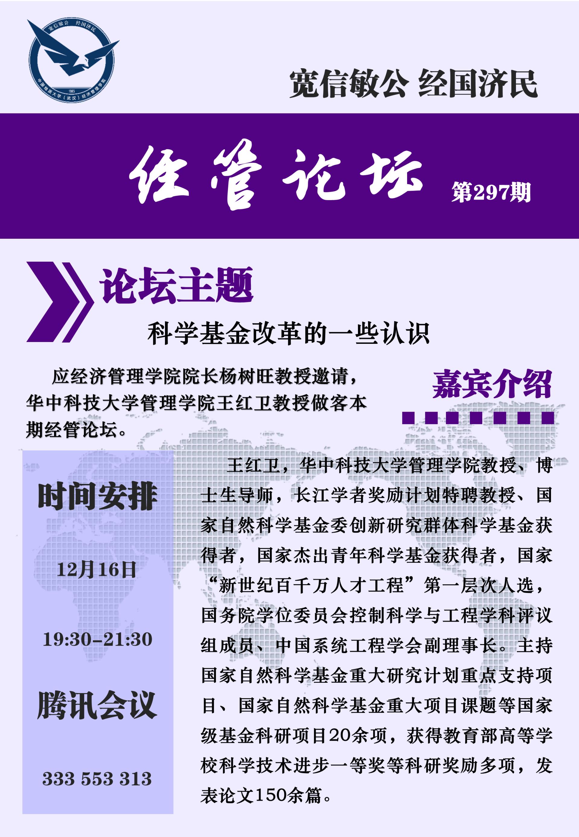经管论坛(第297期)科学基金改革的一些认识