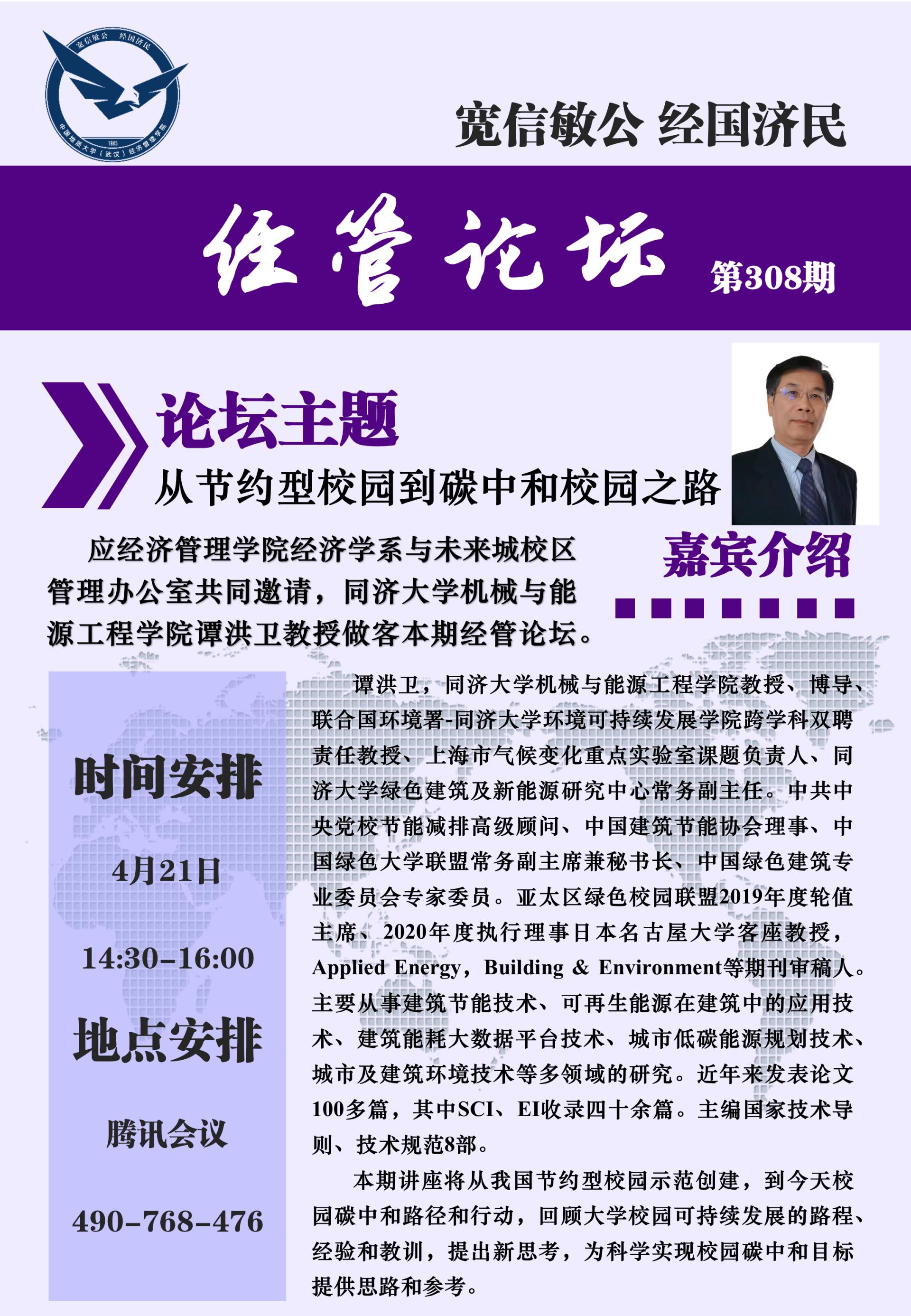 经管论坛(第308期)从节约型校园到碳中和校园之路