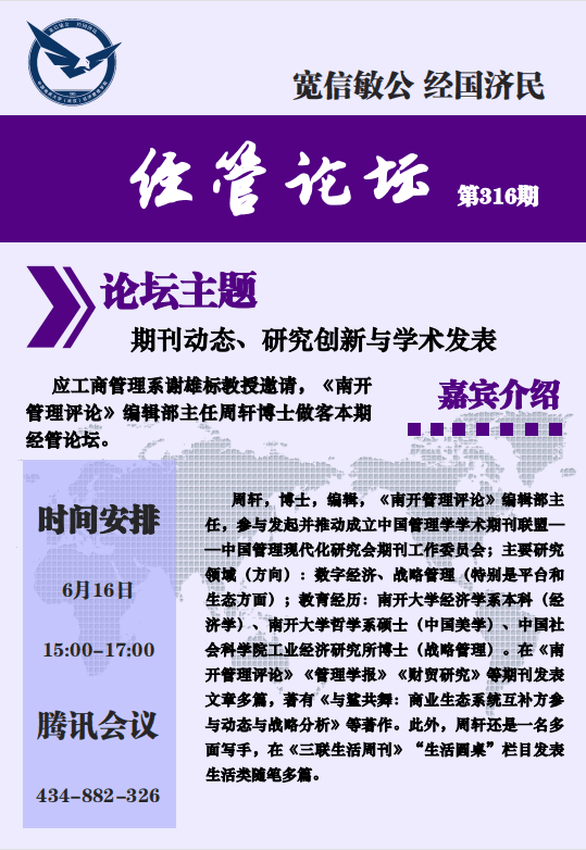 经管论坛(第316期)期刊动态、研究创新与学术发表
