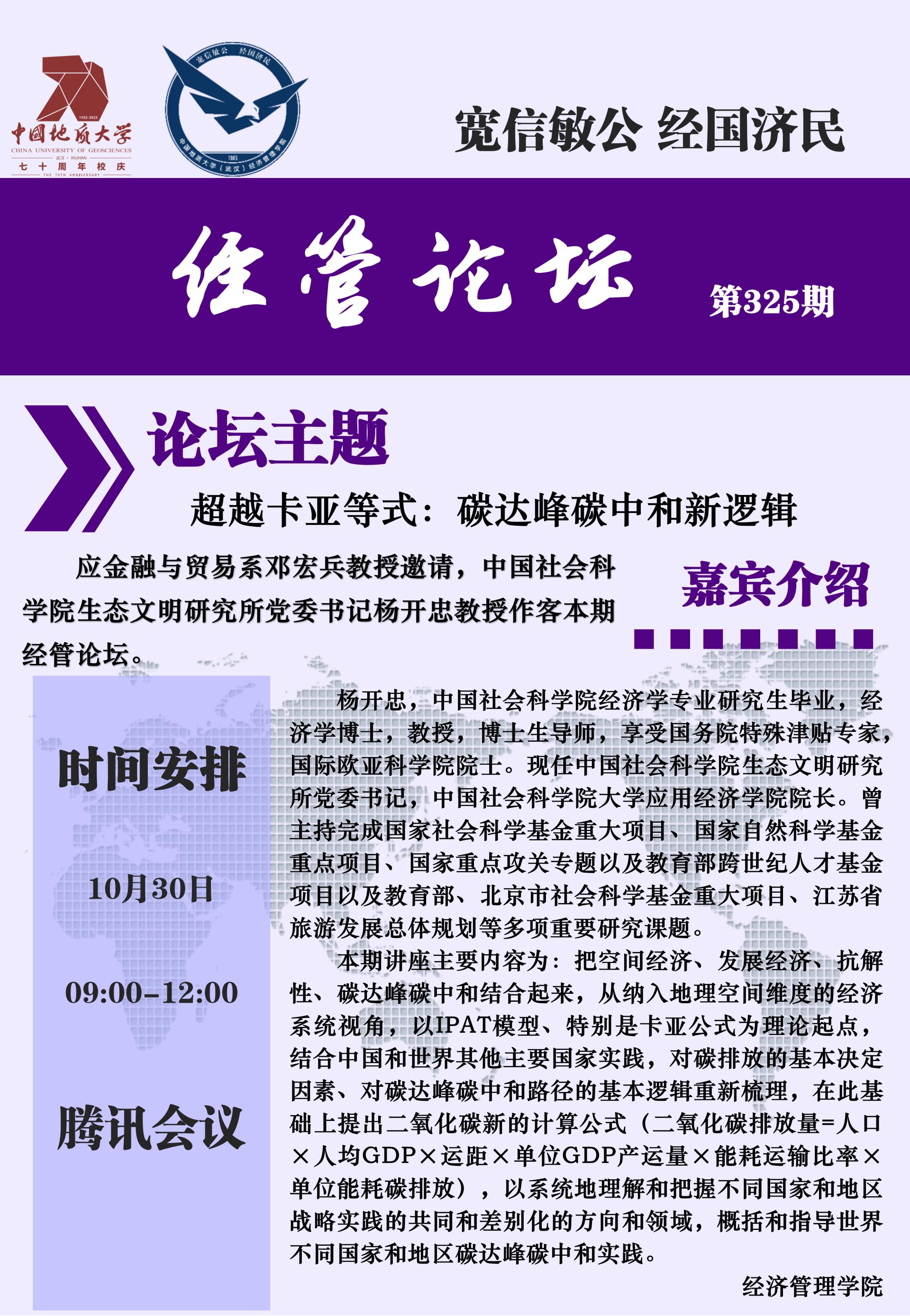 经管论坛(第325期)超越卡亚等式∶碳达峰碳中和新逻辑