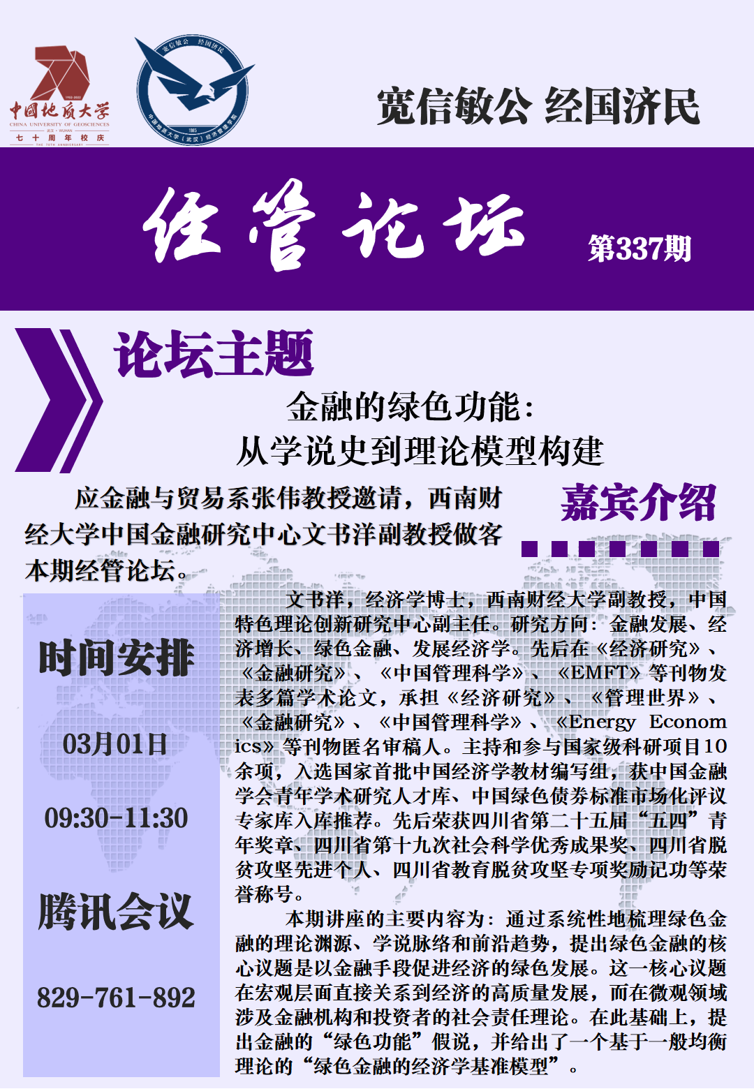 经管论坛(第337期)金融的绿色功能:从学说史到理论模型构建