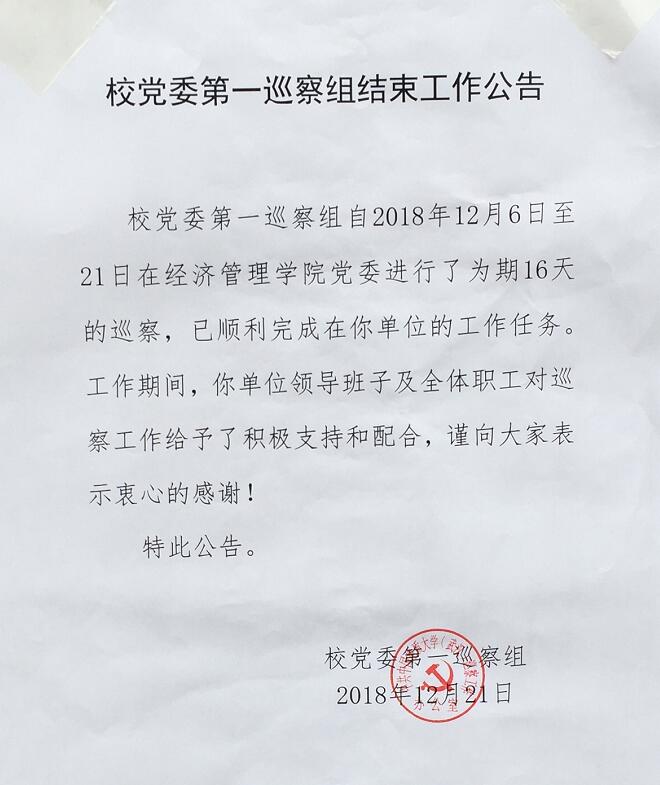 校党委第一巡查组结束工作公告