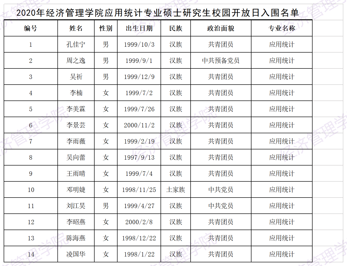 2020年色色 应用统计专业硕士研究生校园开放日入围名单