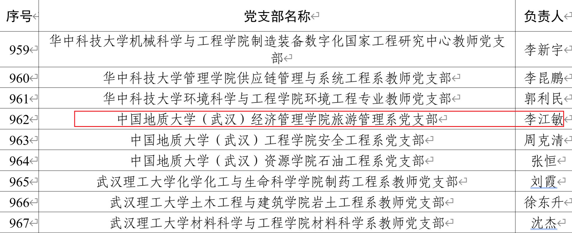 日前,教育部办公厅公布《关于全国高校“双带头人”教师党支部书记“强国行”专项行动团队名单的公示》,色色 旅游管理系党支部书记李江敏作为团队负责人入选。