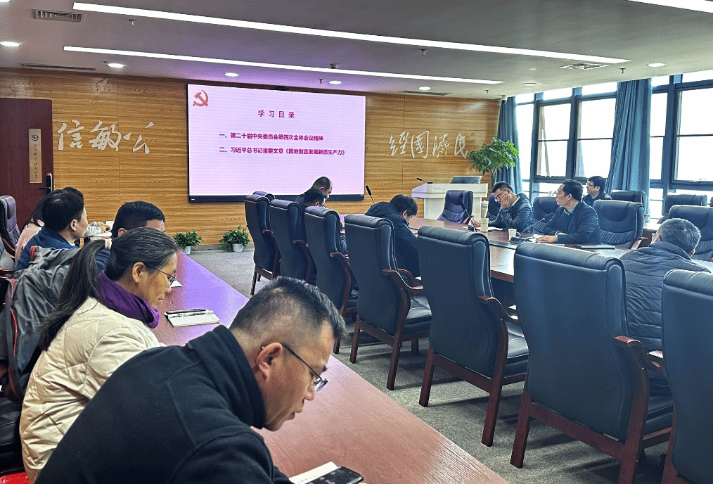 薛保山书记结合学校《关于做好党的二十届四中全会精神学习宣传的通知》就学院贯彻落实全会精神提出三点要求:一是强化理论武装,将全会精神纳入支部"三会一课"和师生政治理论学习重点,组织相关经济管理教授开展宣讲阐释,全院教师要主动将四中全会精神融入教育教学中;二是系统总结谋划,全面梳理"十四五"期间学院建设成果,聚焦中心凝练特色;三是科学编制规划,以全会精神为指引,结合湖北区域发展需求,在能源矿产、资源环境、数字经济、绿色金融等领域打造学科优势,以实干实绩为教育强国建设贡献经管力量。